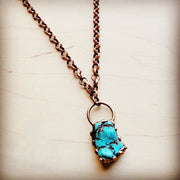 Long Copper Necklace with Turquoise and Copper Pendant 255f