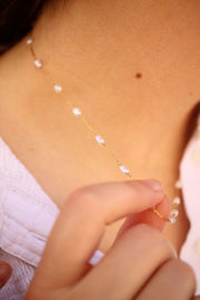 This necklace is everything! The mini pearls throughout the chain are so dainty and pretty, and the necklace itself truly brings every outfit together. I love to layer this one with our other necklaces, but she looks amazing worn alone too!