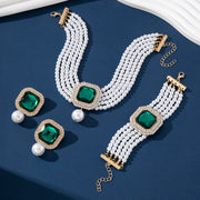 Luxury Exaggerated Bride Jewelry Women Imitation Pearl Necklace Earrings Set