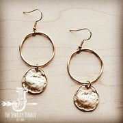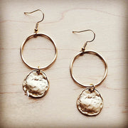 Matte Gold Hoop Earrings with Coin Dangle 203v