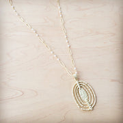 **Matte Gold Multi-Oval Pendant on Pearl and Gold Chain Necklace 261u