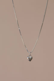 The Mini Silver Puff Heart Charm is a sweet and delicate piece. Add this charm to our Silver satellite chain for a cute but simple piece you can wear on the daily.