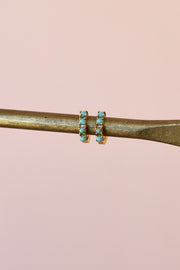 These Mini Turquoise Hoops are a simple and classic staple that add a sophisticated pop of color to your look with mini faux turquoise stones lining a gold huggie. This dainty piece can be mixed and matched with our other gold earrings to create your perfect stack. Also available in silver!