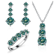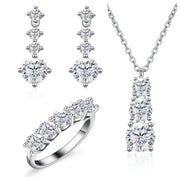 Moissanite 925 Sterling Silver Jewelry Set - Ring Earring Pendant Gift