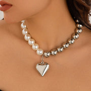 Multi-layer Ccb Round Beads Heart Pearl Necklace