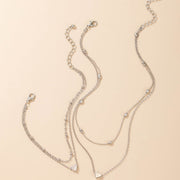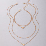Multi Layer Clavicle Chain Peach Heart Pendant Necklace Jewelry Set