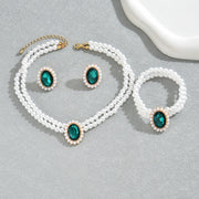 Multi Layer Pearl Chain Choker Necklace Bracelet Earring Set