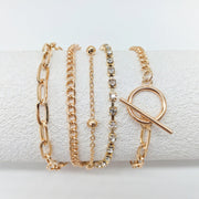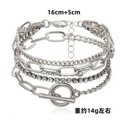 Multi-layer Rhinestone Chain Geometric Hollow Heart Bracelet