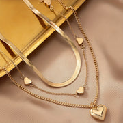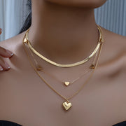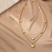 Multi Layered 3pcs Peach Heart Pearl Snake Chain Necklace