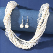 Multi Layered Pearl Crystal Beads Choker Collar Necklace