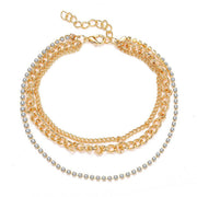 Multilayer Sparking Rhinestone Beaded Chain Anklets Jewelry