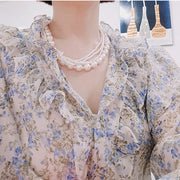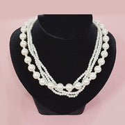Multilayer Strand Chain Pearls Long Choker Necklace