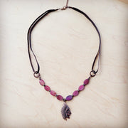 **Natural Pink Jade Beaded Collar Necklace w/ Leather Closure 261o