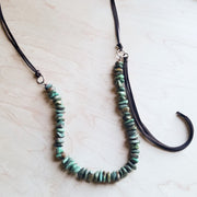 Natural Turquoise Necklace with Side-Tie Vegan Leather Tassel 245c