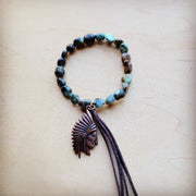 **Natural Turquoise Stretch Bracelet w/ Indian Charm 809u