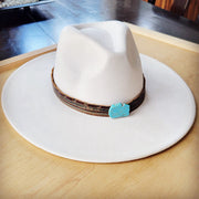 Navajo Embossed Leather Hat Band Only w/ Turquoise Slab 950e