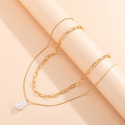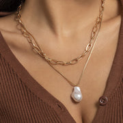 New Design Double Layer Chain Charm Pendant Pearl Necklace