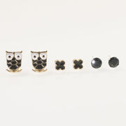 Owl Clover Stud Earrings Set