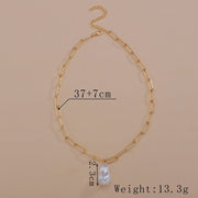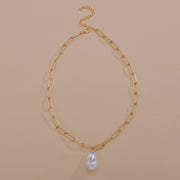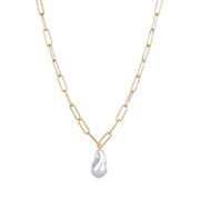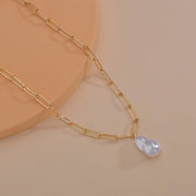 Paper Clip Chain Necklace Baroque Large Pearl Pendant
