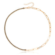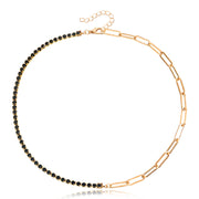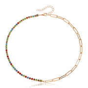 Paper Clip Chain with Colorful Zirconia Tennis Necklace