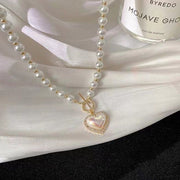 Pearl Beaded Choker Imitation Pearl Heart Necklace