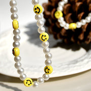 Pearl Beaded Smile Face Bead Choker Necklace for Women