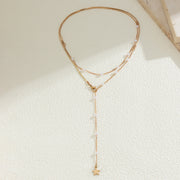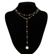 Pearl Fringe Star Round Piece Pendant Chain Necklace