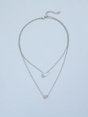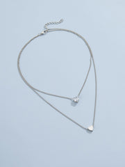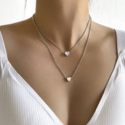 Pearl Heart Pendant Necklace Chain Choker Double Layer