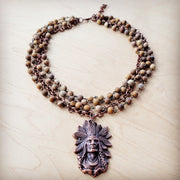 Infuse your style with boho and western flair with our handmade Picture Jasper necklace. Crafted in the USA, this collar-length statement piece features an Indian head coin for added character. Express your passion for unique fashion with this one-of-a-kind necklace.