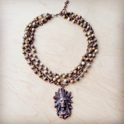 Picture Jasper Beaded Collar Necklace w/ Indian Pendant 260t