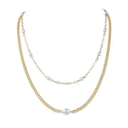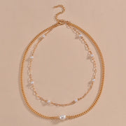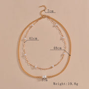 Plain Chain Layer Faux Pearl Choker Jewelry Necklace