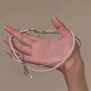 PU Leather Bow Clavicle Chain Choker Pearl Girl Necklace