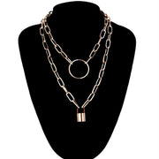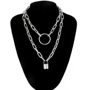 Punk Double Layer Lock Chain Necklace Padlock