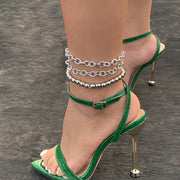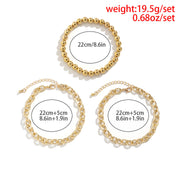 Punk Miami Cuban Chain 3 Layer Thick Chain Beads Anklet Foot Jewelry