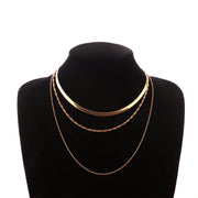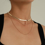 Punk Multi Layered Flat Blade Snake Link Chain Choker Necklace