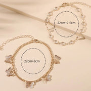 Rhinestone butterfly Pendant Double Layer Anklet Jewelry