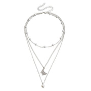 Rhinestone Multilayer butterfly Choker Chain Necklace