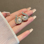 Rhinestone Round Stud Pearl Earrings