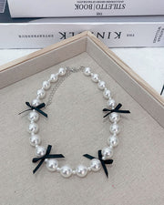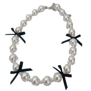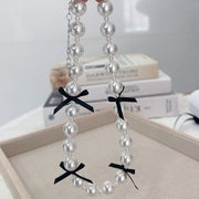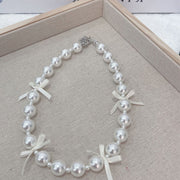 Ribbon Bow Necklace Women's Love Pearl Bead Layered Necklace