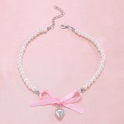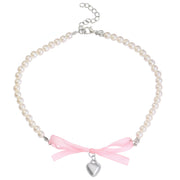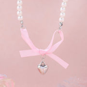 Romantic pink love Bow Pearl Necklace