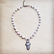 Rose Quartz Beaded Collar Necklace w/ Pendant 260d