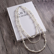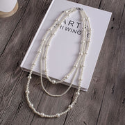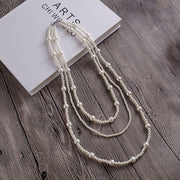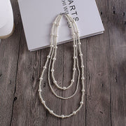Round Glass Pearl Layer Necklace Vintage Beaded Sweater Chain