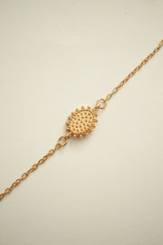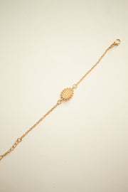 This bracelet is made with a gold-plated stainless steel and can be adjusted from approximately 6.2in.-8.2in. in length.