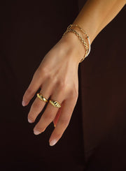 The Sienna Chain Bracelet features a unique square link chain that lays beautifully on any wrist. Meant to mimic the look of a chic watch, this chain pairs well with any gold stack as it sits flat on the skin.