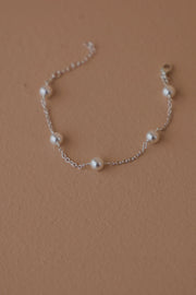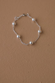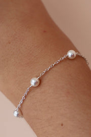 Our Pearl Station Bracelet is the perfect addition to your pearl collection. Made with sterling silver cable chain and Swarovski pearls this piece is sure to bring compliments. Make a complete set with a necklace and bracelet, available in both silver and gold!