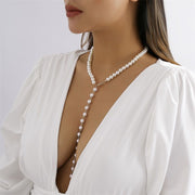 Simple Pearl Beads Long Tassel Pendant Necklace