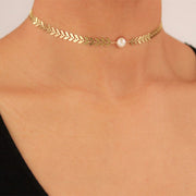 Simple Pearl Charm Gold Fish Bone Chain Short Choker Necklace