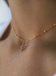 The Starburst Choker necklace features a starburst charm on a satellite ball chain. This necklace is the perfect piece to shine on its own or to layer in addition to your other cubic zirconia pieces.