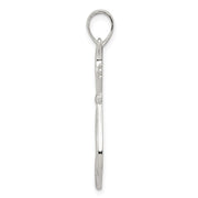 Ready for some feline fun, this silhouette pendant features a two-dimensional open back design fashioned from polished sterling silver. It is approximately 19mm (3/4 Inch) wide by 25mm (1 Inch) long, with the tapered bail the total length is 35mm (1 3/8 Inch). Chain not included.