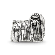 The sculpted image of this miniature Maltese, captured in antiqued sterling silver, will win its way into your heart. It measures approximately 11 x 10mm with a 4mm core that is interchangeable as well as compatible with Reflections and other popular 3mm width bead style bracelets and necklaces.